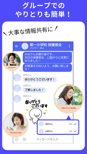 +メッセージ(プラスメッセージ)是一款允许用户仅使用手机号码交换信息的通讯应用程序。通过这个应用程序,用户可以享受群组信息,以及分享邮票、照片和视频。它还支持短信功能,允许用户发送和接收文本消息。